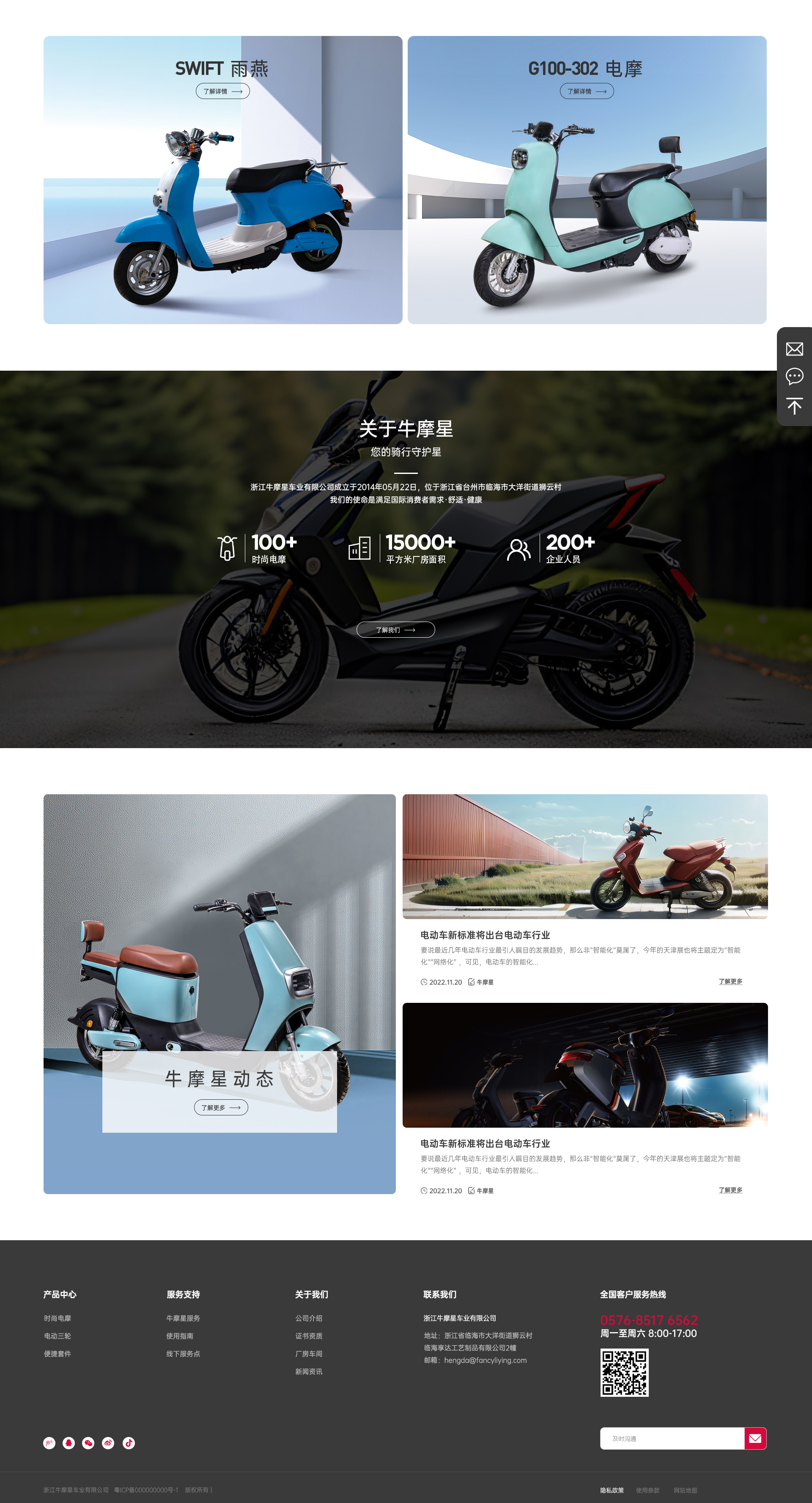 浙江牛摩星车业有限公司成立于2014年05月22日,位于浙江省台州市临海市大洋街道狮云村 临海亨达工艺制品有限公司成立于1999年9月。公司以研发、生产、销售遮阳伞篷及休闲家具等户外休闲用品为主。企业拥有实力雄厚,远销欧美、南美、澳大利亚等国家和地区。