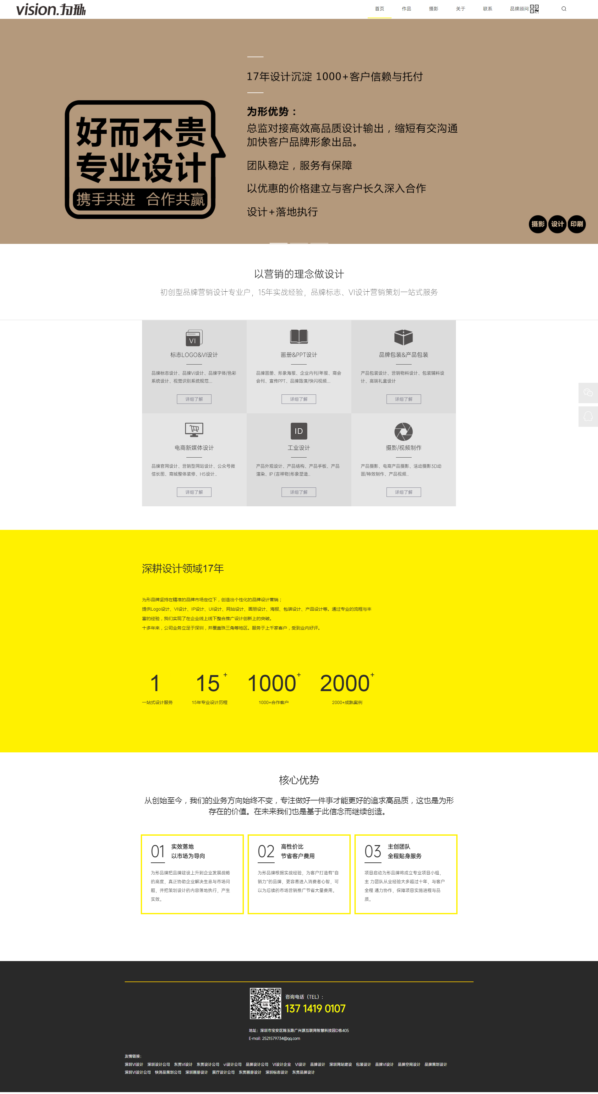 深圳为形品牌设计有限公司,自2005年成立起至今,坚持在精准的品牌市场定位下,创造出个 性化的品牌设计;多年来积累了上千的成功案例经验。这使得我们相比其他竞争者,更了解行 业客户的需求。 我们为客户提供Logo设计、VI设计、UI设计、网站设计、画册设计、海报、产品详情页、PPT、 包装设计、产品设计摄影等服务。通过专业的流程与丰富的经验,我们实现了在企业线上线下 整合推广设计创新上的突破。 十多年来,公司业务立足于深圳,并覆盖珠三角等地区。服务于上千家客户,受到业内好评。